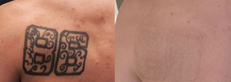 Results: After a series of treatments, the tattoo gradually fades, and the ink particles are broken down and eliminated by the body's immune system. It's important to note that complete tattoo removal may not always be achievable, and there may be residual traces of ink or scarring in some cases.